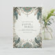 Captivate your guests with this stunningly intricate design that blends rustic elements with high-end luxury. The artwork features elaborate semi-circular medallions at the top and bottom, composed of teal and beige petals with detailed beadwork. Sweeping teal and tan feathers frame the sides, creating a soft and organic border that leads the eye to the center. The background mimics a textured ivory paper, while hanging gem-like accents add a touch of sophistication to this symmetrical masterpiece. This detailed aesthetic is a flawless choice for a summer lakeside wedding or an upscale outdoor ceremony. You might also select this ornate style for a sophisticated bridal shower brunch, a milestone anniversary celebration, or a formal engagement dinner. This decorative feather border is also perfectly suitable for high-end spa service menus, boutique hotel welcome cards, or artisan jewelry certificates.