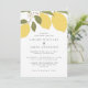 Célébrez votre journée spéciale avec cette magnifique faire-part de mariage au citron. Doté d'un charmant trio de citrons aux feuilles verdoyants et à la fleur délicate au sommet, cette invitation exhale une élégance fraîche d'inspiration méditerranéenne. Les noms de la mariée et du marié sont affichés dans une typographie élégante, ajoutant une touche intemporelle. L'arrière - plan blanc immaculé met en valeur l'esthétique sophistiquée, tandis que le dos de la carte présente une teinte jaune citron vibrante. Parfait pour les mariages d'été, les cérémonies de jardin ou les fêtes de campagne. Entièrement personnalisable pour correspondre aux détails de votre mariage.