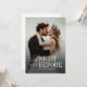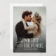 Elegant typography design with timeless serif font and classic calligraphy above couple's photo, additional information on the back, simple and romantic. Great the night before rehearsal dinner invitation for modern classic wedding, simple traditional wedding and formal vintage wedding.