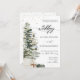 Boho Rustic Christmas Tree Lights Winter Holiday Wedding Invitation. Bohemian Style Drop Botanicals Invitation with Elegant and Simple boho Rustic Tree and Pine Botanicals in Hand-printed Watercolor. The Sage Green background color is gorgeous for boho weddings and Christmas weddings. Simple, printable invitation for holiday and winter weddings.