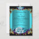 Invitation Elégant Turquoise doré bleu pourpre Roses Annivers