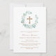 Invitation Elégant Verdure Eucalyptus Gold Cross Baptême