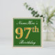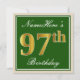 Invitation Elégant, Vert, Faux Or 97ème Anniversaire + Nom