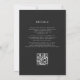 Le bord droit de cette élégante faire-part de mariage moderne est orné d'une bordure d'aquarelle violette ornée d'une parties scintillant en faux argent. Le texte personnalisable combine les polices argentées grises serif, copperplate et italique sur un arrière - plan noir ardoise. L'envers offre de l'espace pour les détails mariages sur un arrière - plan noir en ardoise solide, ainsi qu'un code QR que les clients peuvent scanner pour visiter votre site Web et RSVP, ce qui permet d'économiser le coût d'impression et d'envoi de cartes RSVP séparées.