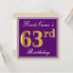 Invitation Elégant, Violet, Doré Faux 63e Anniversaire + Nom