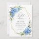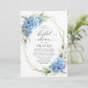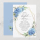 Invitation Elégante aquarelle bleu Hydrangea FÊTE DES MARIÉES