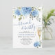 Invitation Elégante aquarelle bleu Hydrangea FÊTE DES MARIÉES