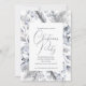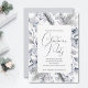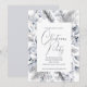 Cette invitation de Noël élégante et personnalisable présente une magnifique bordure botanique d'aquarelle sur le thème de l'hiver dans le bleu et le gris doux. Personnalisez facilement la typographie gris foncé avec les détails de votre fête.