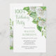 Invitation Elégante aquarelle Rose blanche 100e fête d'annive