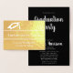 Un bonnet de graduation et les mots 'Fête de Remise de Diplôme' sont sur le devant de cette carte avec feuille d'or. À l'intérieur, le fond est noir, vous pouvez personnaliser votre message avec les détails de votre fête de remise de diplôme.