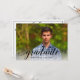 Le mot "diplômé" dans un élégant script noir, ainsi que le nom et l'année de classe du diplômé (ou supprimer cette ligne) est imprimé sur le devant de ces invitations à la fête de remise des diplômes ou à la cérémonie de remise des diplômes. Mettez votre photo à l'avant - nous avons ajouté un dégradé blanc en bas pour que "gradué" soit lisible sur votre photo. Le mot Celebrate et vos informations personnelles de fête à l'arrière (la bordure peut être supprimée.) Plus de designs dans notre magasin.