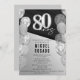 Invitation Elégante Black Silver Balloons 80e fête d'annivers