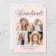 Invitations élégantes de remise de diplômes avec "Graduate" affiché en haut dans un script de calligraphie noir avec un arrière - plan rose pâle. Le design comprend quatre photos du diplômé présentées dans un style collage avec le nom du diplômé, le nom de l'école et l'année de remise des diplômes indiqués ci-dessous. L'invitation de la fête de remise de diplômes de 4 photos revient pour afficher les détails de votre fête. L'invitation chic à la fête de remise de diplômes est parfaite pour les fêtes de fin d'études secondaires et collégiales.