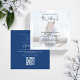 Ce design comprend une élégante calligraphie classique photo code QR modèle invitation RSVP, avec un simple modèle de carré floral bleu, un site internet réponse de l'invité, une classe de téléchargement numérique moderne, un feuillage vert fleur bleu minimal, un jardin boho style romantique doux, un script de calligraphie typographie lettering, avec un monogramme et un script arrière, avec un effet de superposition de vellum photo transparent, un simple minima design minimaliste et tendance