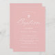 Ce design chic et élégant présente une calligraphie blanche et un texte assorti simple et moderne sur un arrière - plan rose. Une croix assortie rend cela parfait pour votre célébration religieuse du baptême chrétien pour votre fille.