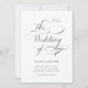Ces magnifiques invitations à un mariage présentent un script de calligraphie bleu marine moderne et tourbillonnant sur un simple arrière - plan blanc pour un design classique mais néanmoins mis à jour.