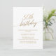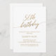 Cette élégante calligraphie dorée 50ème anniversaire invitation est parfait pour une simple fête d'anniversaire. Le design neutre présente une carte minimaliste décorée avec une typographie romantique et fantaisiste de feuille d'or. Remarque : Ce design ne comporte pas de véritable feuille d'or. C'est un graphisme de haute qualité fait pour ressembler à du papier doré.