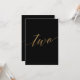 Cette élégante table de calligraphie dorée et noire numéro deux est parfaite pour un mariage simple. Le design neutre présente une carte minimaliste décorée avec une typographie romantique et fantaisiste de feuille d'or. La carte s'imprime à l'avant et à l'arrière (double face). Les autres numéros de tableau de la collection sont vendus séparément. Remarque : Ce design ne comporte pas de véritable feuille d'or. C'est un graphisme de haute qualité fait pour ressembler à du papier doré.