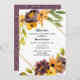 Une élégante invitation à la douche nuptiale avec fleurs violettes et oranges
