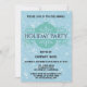Célébrez la saison des Fêtes avec cette élégante tourbillonnant fantaisie verte boule de Noël / bauble ornament bleu compagnie annuel fête des Fêtes. Les détails de la fête sont écrits dans une élégante typographie en noir gras à l'intérieur de la scène festive de Noël. L'arrière - plan de couleur bleu clair est décoré de taches de flocons blancs tombants. Cette invitation chic est parfaite pour des fêtes de vacances, de Noël ou d'hiver !