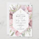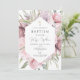 Belles invitations pour les filles à baptiser avec un ornement rose. Retournez notre invitation pour voir un retour de coordination pour une touche spéciale supplémentaire. Visitez notre boutique pour voir toute notre collection religieuse.