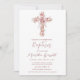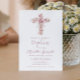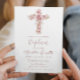 Invitation Élégante Croix Et Fleurs Roses Fille Baptême