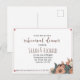 Célébrez votre mariage imminent avec style et grâce grâce à cette carte postale d'invitation au dîner de répétition magnifiquement conçue. Avec une œuvre d'art florale élégante dans des tons doux et chauds et une typographie sophistiquée, cette carte donne parfaitement le ton pour une soirée inoubliable. Entièrement personnalisable, elle vous permet d'ajouter facilement vos détails d'événement et de personnaliser le message. Idéal pour les couples qui souhaitent impressionner leurs invités avec une touche de charme intemporel.