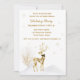 Une invitation élégante de vacances avec le renne d'or avec l'accent de houx, l'arbre d'or et la neige sur l'arrière - plan blanc avec des flocons de neige d'or. Cette conception à la mode est parfaite pour vos événements d'entreprise de vacances ou parties à la maison.