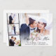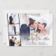 Faire-part élégant de mariage intime ou privé avec une invitation à la réception comportant la photo de votre jour de mariage superposée à une bande de trois photos carrées plus petites et "Happily Ever After" dans un script moderne élégant. Ajoutez vos prénoms, date de mariage et lieu dans une typographie simple. Au verso, personnalisez votre faire-part de mariage et votre invitation à la réception et ajoutez vos noms dans un script ressemblant à une signature.
