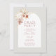 Élevez votre célébration de remise de diplôme avec nos invitations de fête de fin d'études tendance, dotées d'un superbe cadre botanique arqué sur le devant, parfait pour mettre en valeur votre photo préférée et ajouter une touche personnelle à l'occasion. Ornées de fleurs bohèmes dans les nuances captivantes de pêche, de rose poussiéreux et de terre cuite, ces invitations dégagent une élégance charmante avec leurs botaniques et leur typographie en aquarelle stylisées. Au dos, vous trouverez un espace pour une photo chérie. Préparez-vous à partager votre joie et votre réussite d'une manière à la fois élégante et mémorable !