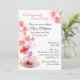 Invitation faite sur commande de joli thé de dames faite dans le blanc, avec de beaux graphiques d'une tasse de thé de porcelaine et des shamrocks colorés tombant dans la tasse. Le texte dans le rose et le noir est entièrement personnalisable pour adapter à vos besoins d'événement. Grand pour beaucoup de différentes occasions.