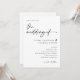 Donnez le ton de votre fête avec ce design moderne en noir et blanc avec un élégant script manuscrit. Le style calligraphie chic crée un look audacieux mais raffiné, tandis que la disposition propre le garde frais et tendance. Parfait pour les couples qui aiment une esthétique contemporaine, cette invitation de mariage manuscrite est facile à customiser avec vos propres détails, polices et couleurs pour correspondre à votre style d'événement.
