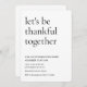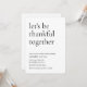 Célébrez la gratitude avec style avec cette invitation de dîner de Thanksgiving minimaliste présentant la phrase sincère « soyons reconnaissants ensemble ». Avec un fond blanc épuré et une typographie élégante, ce design est à la fois moderne et intemporel — parfait pour toute célébration de Thanksgiving.