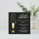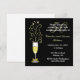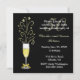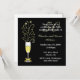 Invitation élégante et personnalisée pour une fête d'anniversaire de mariage, réalisée en noir et or. Graphiques d'un verre festif de champagne décoré d'un ruban de ton or, sur la tige, et des étincelles sortant du haut, se trouve sur le côté gauche de l'invitation. Un fond noir uni, avec du texte blanc et or entièrement personnalisable pour répondre à vos besoins de fête. Idéal également pour les fêtes d'anniversaire.