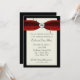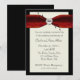 Invitation élégante pour anniversaire de mariage réalisée en crème, rouge et noir. Un fond en couches de crème et de noir, avec des graphiques d'un ruban de satin rouge damassé élégant en haut. Un diamant en forme de cœur est posé sur le ruban, avec des fioritures noires derrière le diamant. Personnalisez tout le texte pour répondre à vos besoins. Une invitation très élégante et formelle.