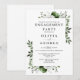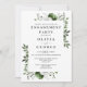 Cette élégante invitation de fête de fiançailles florale verte et blanche peut être personnalisée avec vos informations en typographie moderne. Conçue par Thisisnotme©