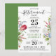 Cette élégante invitation à la retraite a un design élégant avec un thème floral avec magenta rouge tulip, feuilles verts, lavande bleu et blanc botanique | fleurs sauvages. Ce bel échantillon de jardin est installé sur un simple arrière - plan blanc. On ressent presque l'air frais d'une prairie printanière. Le dos est un vert délicat. Tous les textes sont personnalisables, vous pouvez les personnaliser, et faire votre propre invitation chic à une fête de retraite. Également disponible en variations de couleurs et en format numérique, commandez le vôtre maintenant!