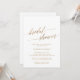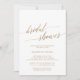Cette élégante carte d'invitation à la douche nuptiale en calligraphie dorée est parfaite pour une douche nuptiale automnale. Le design neutre présente une carte minimaliste décorée avec une typographie romantique et fantaisiste de feuille d'or. Remarque : Ce design ne comporte pas de véritable feuille d'or. C'est un graphisme de haute qualité fait pour ressembler à du papier doré.