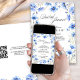 Invitation Élégante Fête des mariées de code QR Floral Bleu