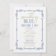 Pour la future mariée. 'Quelque chose de bleu avant moi' invitation à la douche nuptiale. Inclure votre propre texte en fonction de vos détails de l'événement. C'est une invitation chic et élégante à la douche nuptiale est le bleu, l'or (en couleur seulement) et le blanc. Choisissez votre propre type de papier parmi la sélection de types de papier. Le design a été créé sur du papier de lin.