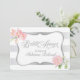Invitation à la douche nuptiale - Elégant Argent Stripes et Pink Hydrangeas sur Blanc - beau comme il est avec votre personnalisation - MAIS Choisissez N'IMPORTE QUELLE couleur arrière - plan vous voulez, les bandes d'argent resteront en place. Utilisez le bouton "Customiser ceci" et cherchez "Couleur Arrière - plan imprimée" Cliquez sur la petite pipette et choisissez votre couleur - cela apparaîtra entre les bandes argentées - Voici quelques-unes des couleurs trouvées dans les fleurs si vous voulez que l'arrière - plan les associe : jaune - Utiliser f8e6b4 pour vert clair - Utiliser dfe9c5 pour vert pays - Utiliser a3ac99 pour le rose foncé - Utiliser f3a5b0 pour le rose pâle - Utiliser f7dfe4 Vous pouvez aussi choisir ces couleurs pour votre texte si vous le souhaitez - Encore une fois, utilisez la Personnaliser Ce bouton - mettez en surbrillance la zone de texte dont vous souhaitez changer la couleur et vous verrez une petite zone de couleur sous le bouton "ajouter du texte", cliquez sur cette zone et une palette de couleurs apparaîtra, pour utiliser une couleur personnalisée comme celles que j'ai fourni les nombres hex pour, cliquez sur avancé et placez le numéro là-dedans, puis cliquez sur terminé. Votre texte aura été modifié en fonction de cette couleur - vous devrez le faire pour chaque zone de texte à modifier. Chaque couleur arrière - plan donne une impression totalement différente du design.