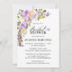Une calligraphie élégante et de jolies fleurs violettes créent cet invitation de douche nuptiale aquarelle.