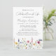 Des amis Invitations et la famille pour célébrer la vie de votre être cher avec cette Elégante invitation funéraire de la fête de la vie de Fleur sauvage. Le design comporte un script noir manuscrit avec vos détails d'événement importants ci-dessous en écriture serif. Un beau pré de fleurs sauvages d'aquarelle et de feuillage s'étend au fond du décor dans des tons vifs de rose, jaune, violet, bleu et vert contrastant avec un arrière - plan blanc. Les fleurs sauvages sont parfaits pour les événements commémoratifs du printemps et de l'été.