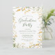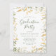 Élégantes invitations à la fête de graduation florale avec les détails de votre fête de graduation en lettres vert foncé encadrées par des fleurs d'aquarelle dans les tons jaune vif et or avec feuillage vert luxuriant. Les invitations de graduation fleurie jaune sont parfaits pour les diplômés du secondaire et du collège.