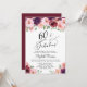 Invitation virtuelle à la fête du 60e anniversaire avec "60 & Fabulous" dans un élégant script de calligraphie et bouquets d'aquarelle de fleurs bordeaux, roses et violets.