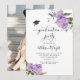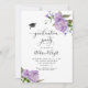 Elégante carte de modèle à la fête de graduation florale avec aquarelle illustration pivoine violette avec verdure. Il y a aussi une illustration d'un plafond de graduation. Vous pouvez ajouter la photo du diplômé au verso de la carte. Idéal pour les diplômés du secondaire et du collège.
