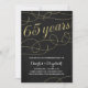 Cette invitation de fête d'anniversaire de mariage de 65 ans, fantaisiste et élégante, présente des fioritures vintage élégantes, une calligraphie qui indique "65 ans", un faux papier doré et un fond noir chic.