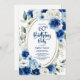 Invitation Elégante Florale Bleue 60e fête d'anniversaire