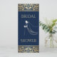 Elégante marine de Fête des mariées avec Gold Invitation conçu avec du texte de couleur or et des accents sur un arrière - plan bleu marine. Le texte avant comprend : Fête des mariées avec un croquis de mariée décoratif. Le texte inverse comprend : le nom de la mariée, la date de l'événement, l'heure, l'emplacement, l'adresse, les détails de la RSVP et la note du registre de la mariée. Pour personnaliser, insérez simplement vos détails dans notre modèle facile, en remplaçant l'exemple de texte.