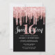 Ce design d'invitation moderne comprend la texture métallique de la parties scintillant à goutte d'or, l'arrière - plan noir et l'élégante police calligraphie. Ajoutez votre photo préférée.